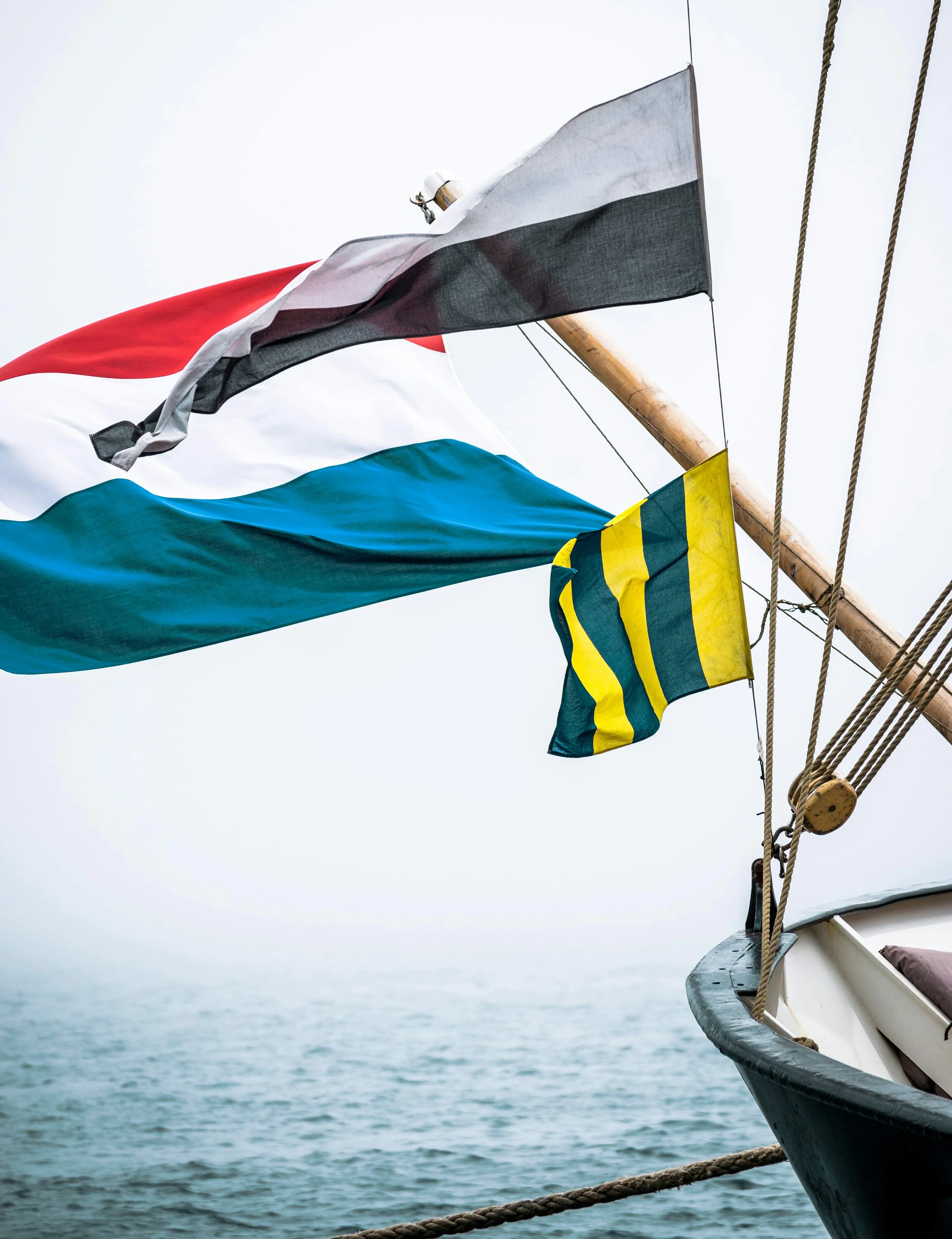 As we leaned into the coastal inspiration, nautical flags came to mind to easily mirror the M and W lettering, creating two flags.